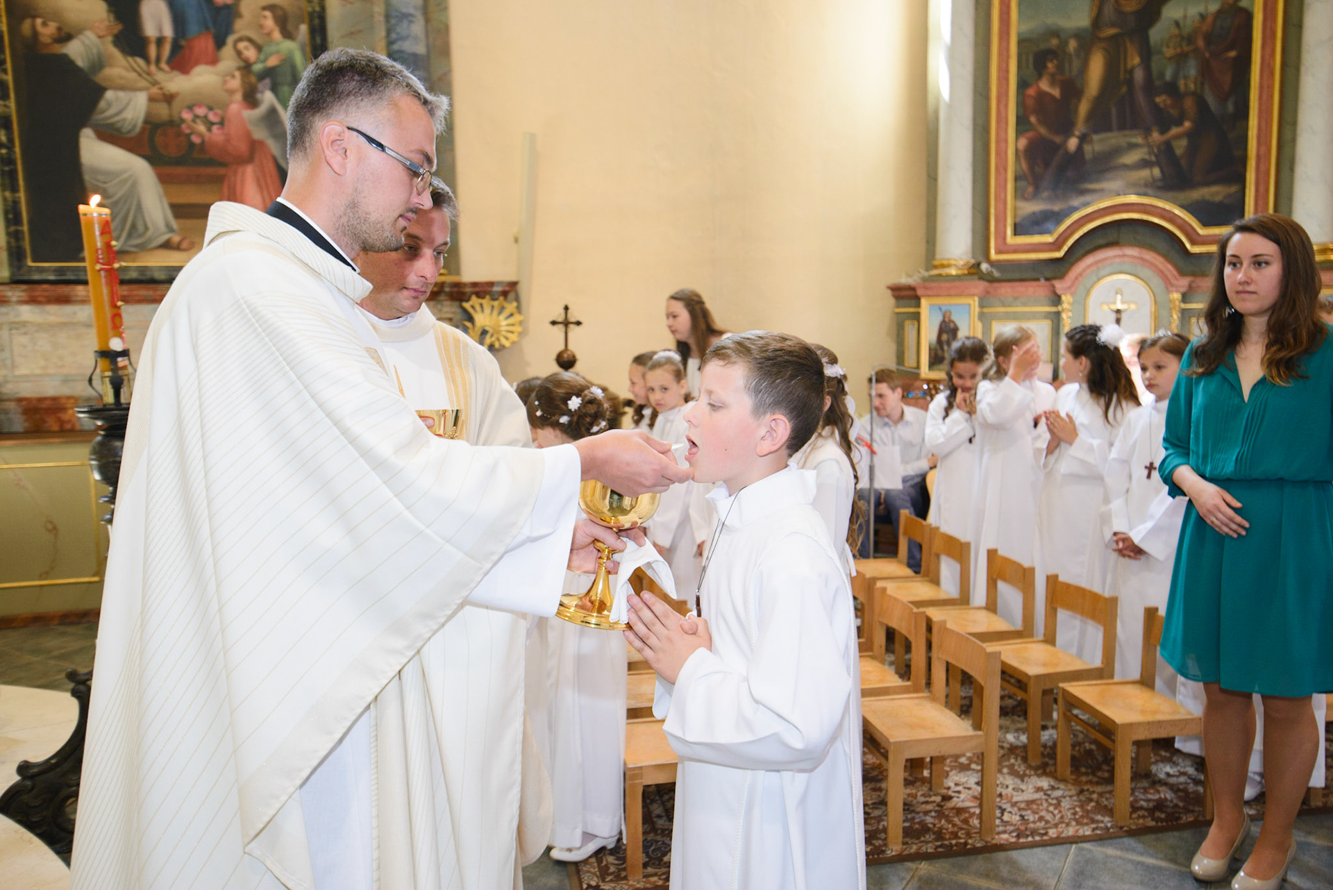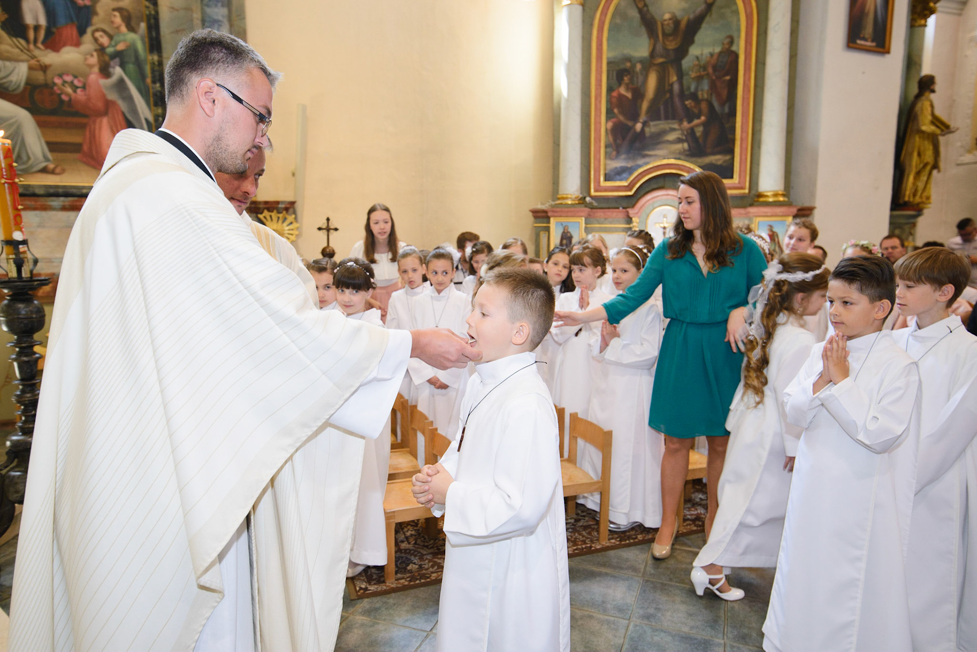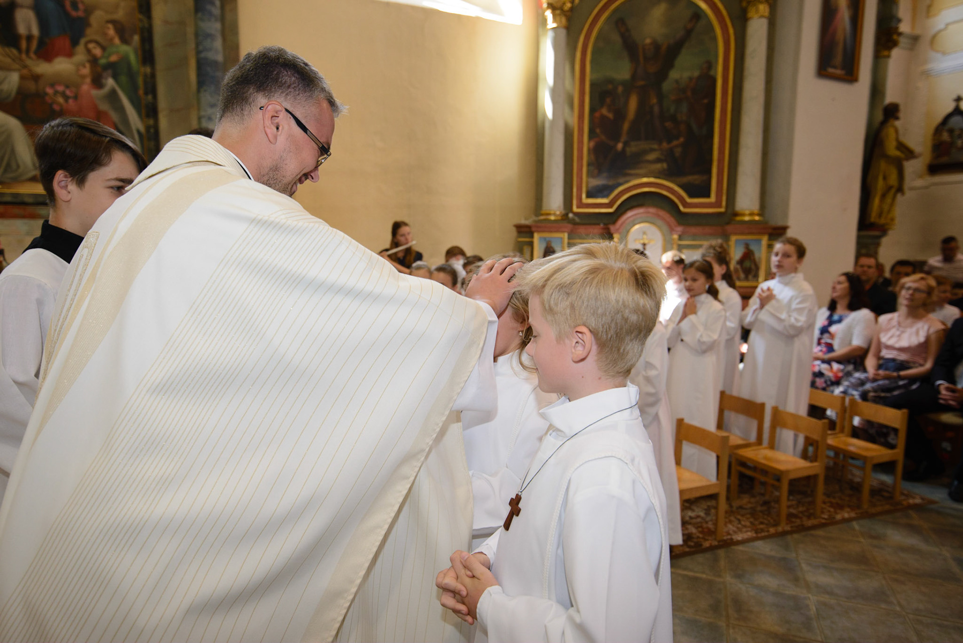 Vďaka bývalému pánovi kaplánovi z Hanušoviec, som mohol byť súčasťou prvého sv.prijímania v Nižnej Šebastovej, kde teraz pán kaplán pôsobí. Nafotiť viac ako tridsiatku detí je náročné,ale napriek tomu to bolo príjemné fotenie.
